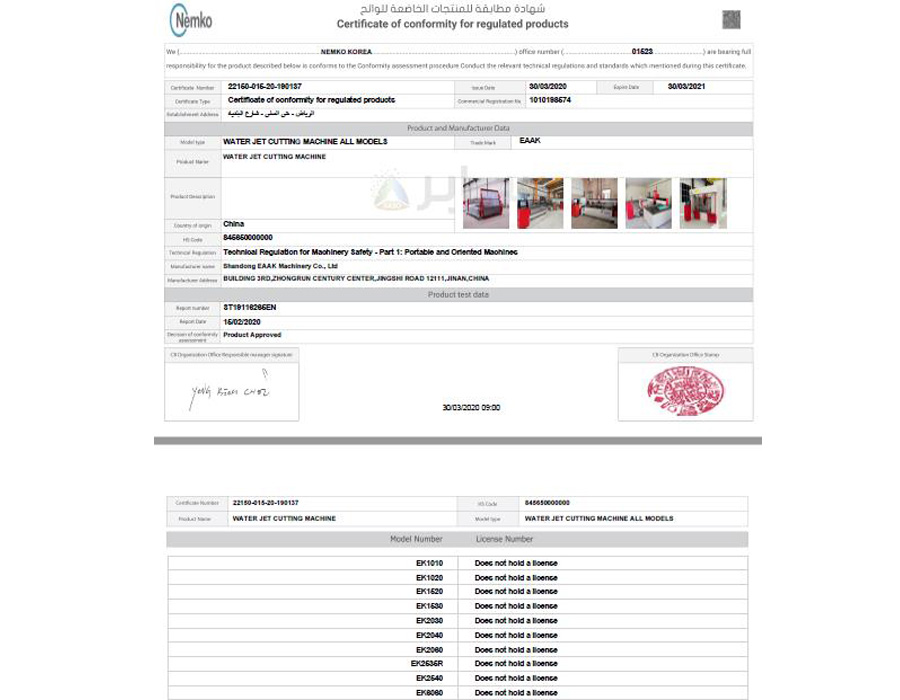 Shandong EAAK Machinery got genuine SABER certification from Saudi Arabia |